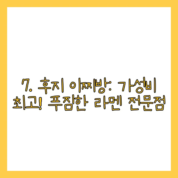 7. 후지 이찌방: 가성비 최고! 푸짐한 라멘 전문점