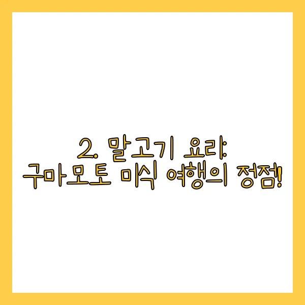 자, 이제 구마모토 미식 여행을 떠날 준비가 되셨나요? 다채로운 맛과 향이 가득한 구마모토에서 잊지 못할 미식 경험을 만들어보세요!✈️ 맛있는 음식과 함께라면 여행이 더욱 풍성해질 겁니다! Bon appétit!😋