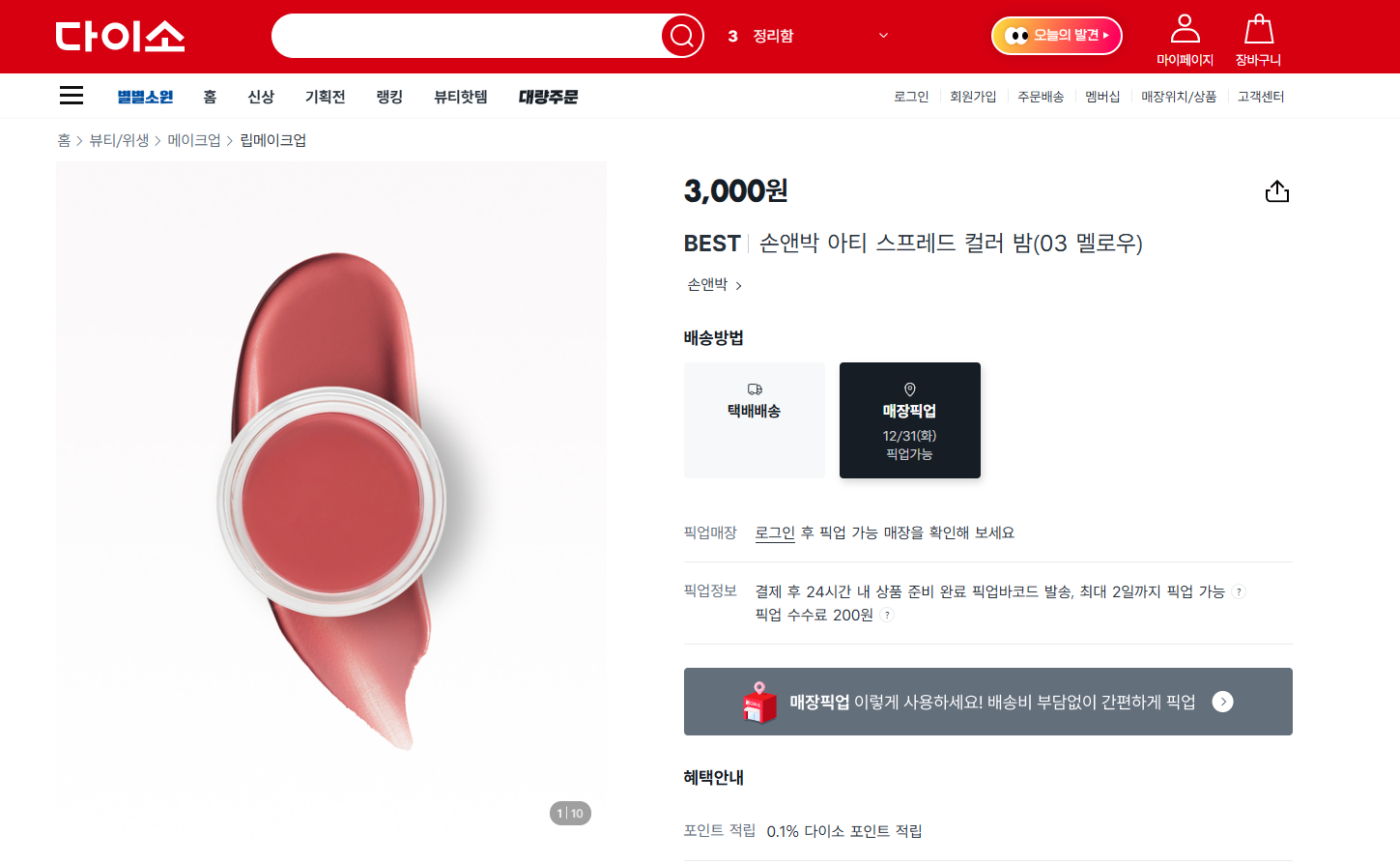 다이소 홈페이지 택배배송, 매장픽업 방법