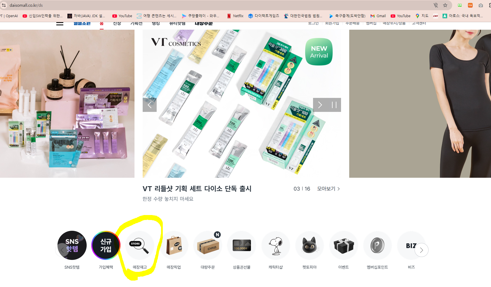 홈페이지에 들어가면 메인화면이 나오는데요, 메인화면에 매장 재고를 확인할 수 있으실거에요! 아 재고 확인할때에는 따로 로그인 안하셔도 됩니다