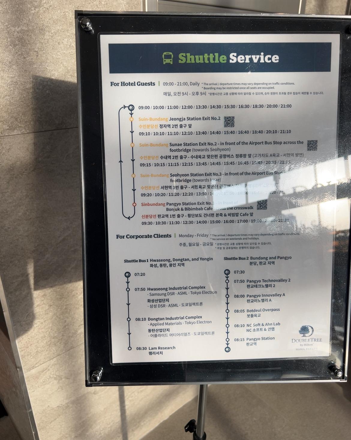 셔틀 시간 등 궁금하실까봐 찍어왔어요 ㅋㅋ (블로그정신)