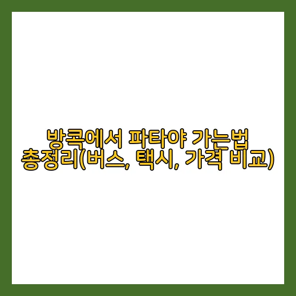 방콕 여행 후 파타야로 이동 예정이신가요?✈️ 파타야는 방콕에서 가까운 아름다운 해변 휴양지로, 다양한 해양 액티비티와 밤 문화를 즐길 수 있는 매력적인 도시입니다. 하지만 파타야에는 공항이 없어 방콕을 경유해야 합니다. 본 포스팅에서는 방콕에서 파타야로 이동하는 다양한 교통수단(버스, 택시, 벨 트래블 등)의 특징과 가격, 소요 시간, 예약 방법, 꿀팁까지! 2024년 최신 정보를 바탕으로 상세하게 비교 분석하여 여러분의 여행 스타일에 딱 맞는 최적의 이동 방법을 제시해 드립니다. 자, 그럼 함께 알아볼까요? 😊