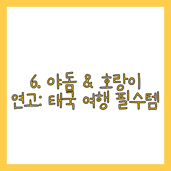 야돔과 호랑이 연고는 태국 여행의 필수품! 코막힘, 두통, 멀미에 효과적인 야돔과 근육통, 벌레 물린 곳, 타박상에 효과적인 호랑이 연고는 작은 크기로 휴대가 간편해서 여행 중 유용하게 사용할 수 있습니다. 7-eleven이나 Boots와 같은 드럭스토어에서 쉽게 구매할 수 있으니, 꼭 챙겨가세요!