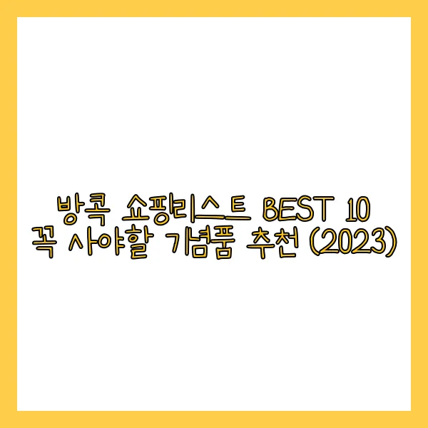 방콕 쇼핑, 어디서부터 시작해야 할지 막막하신가요? 걱정 마세요! 이 글에서는 2024년 최신 트렌드를 반영한 방콕 쇼핑리스트 BEST 10과 숨겨진 쇼핑 꿀팁까지, 방콕 쇼핑의 모든 것을 알려드립니다. 태국 쇼핑 리스트, 방콕 기념품, 방콕 쇼핑 추천, 방콕 꼭 사야할 것 등 쇼핑 관련 키워드를 총망라하여 방콕 쇼핑의 A to Z를 완벽 정복해보세요!