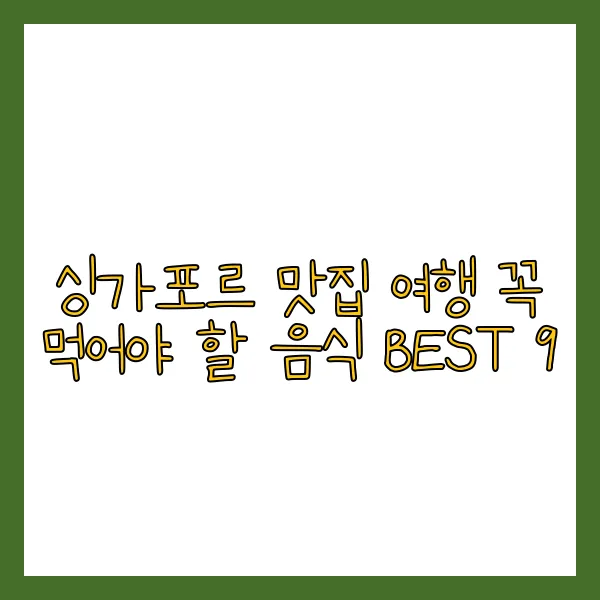 싱가포르 미식 여행, 이제 시작입니다! 지금 바로 싱가포르로 떠나, 다채로운 맛의 향연을 경험해 보세요! ^^ 위에 소개된 9가지 음식 외에도 싱가포르에는 숨겨진 맛집과 다양한 음식들이 여러분을 기다리고 있습니다. 자신만의 미식 경험을 만들어보세요!