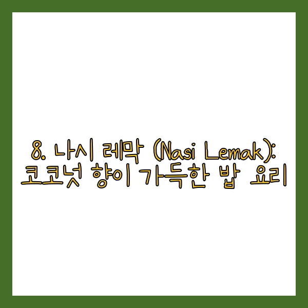8. 나시 레막 (Nasi Lemak): 코코넛 향이 가득한 밥 요리