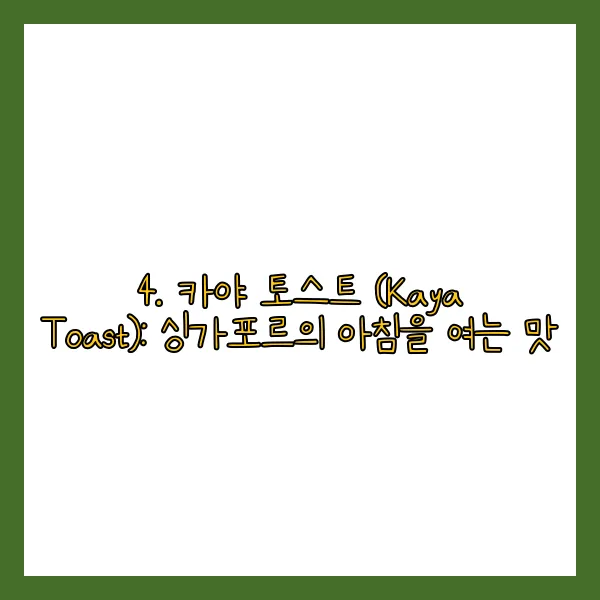4. 카야 토스트 (Kaya Toast): 싱가포르의 아침을 여는 맛