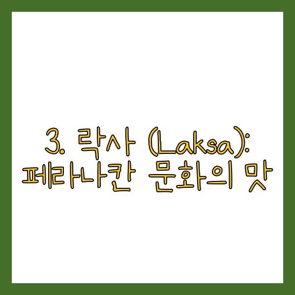 3. 락사 (Laksa): 페라나칸 문화의 맛
