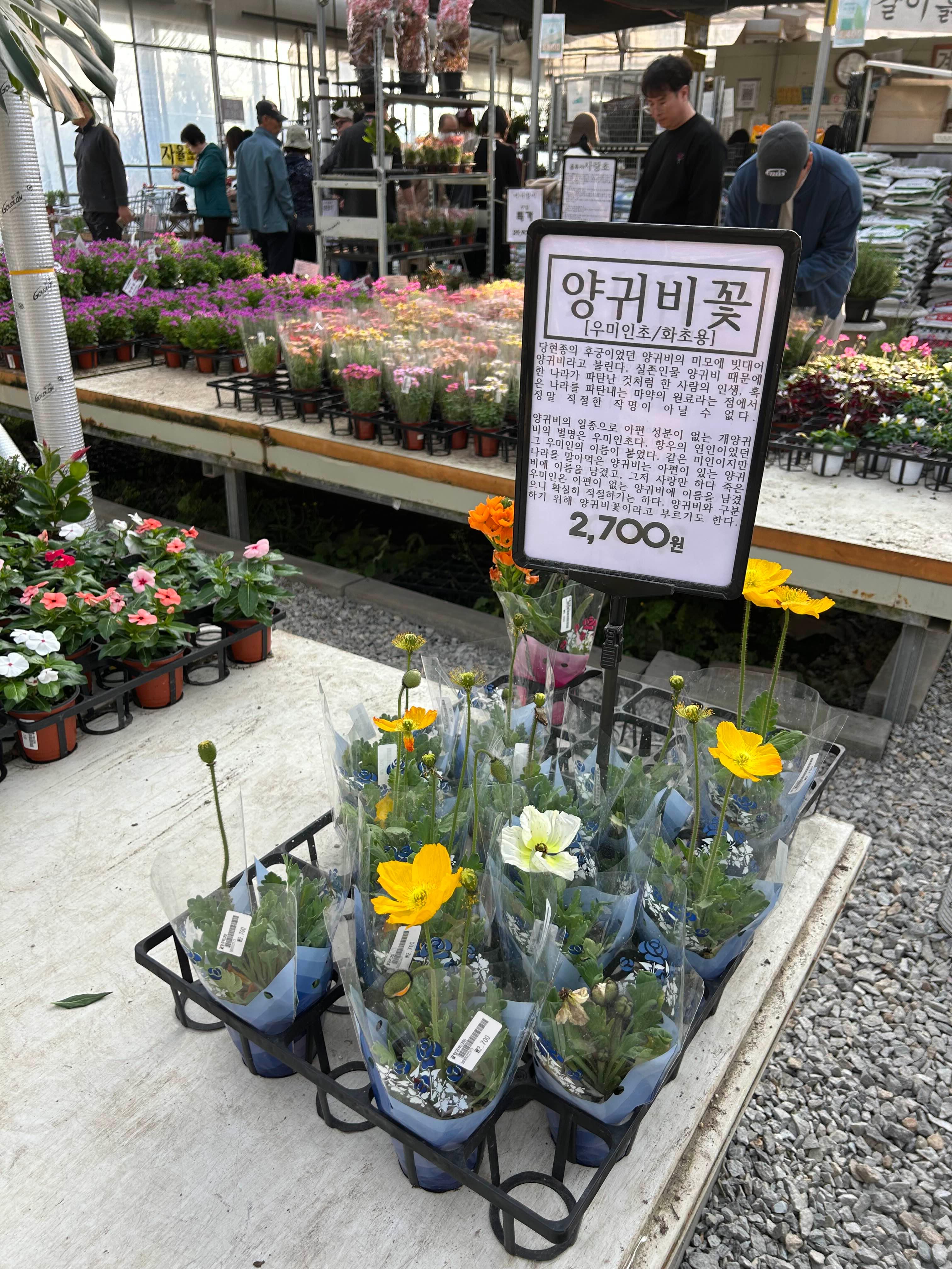 꽃이랑 식물 가격이 비싸지 않아서 부담 없이 여러개 담을 수 있었어요! 양귀비(화초용)이랑 팬지, 장미 등 정말 예쁜 꽃들이 많았는데요 가격도 3000원에서 5000원 사이어서 가격이 매우 저렴했어요!