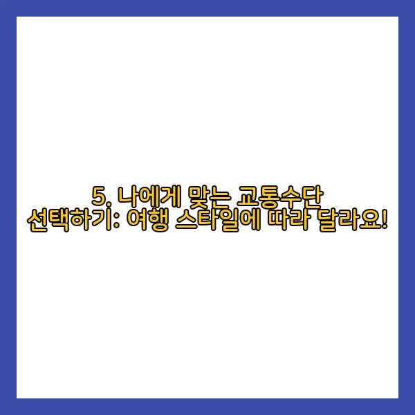 5. 나에게 맞는 교통수단 선택하기: 여행 스타일에 따라 달라요!