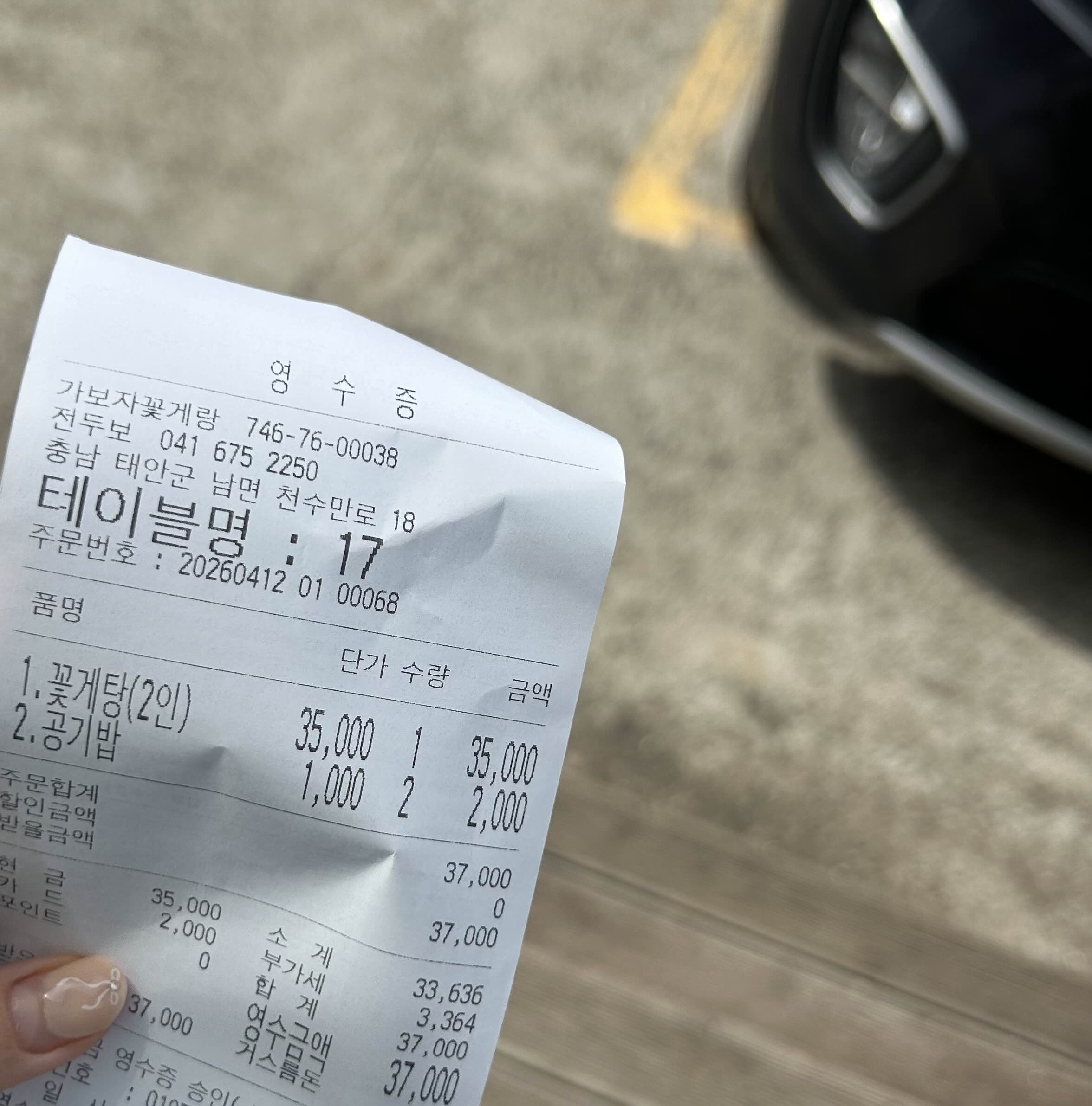 그렇게 해서 총 37000원이지만 32800원에 아주 맛도리 꽃게탕 접수 완료~!